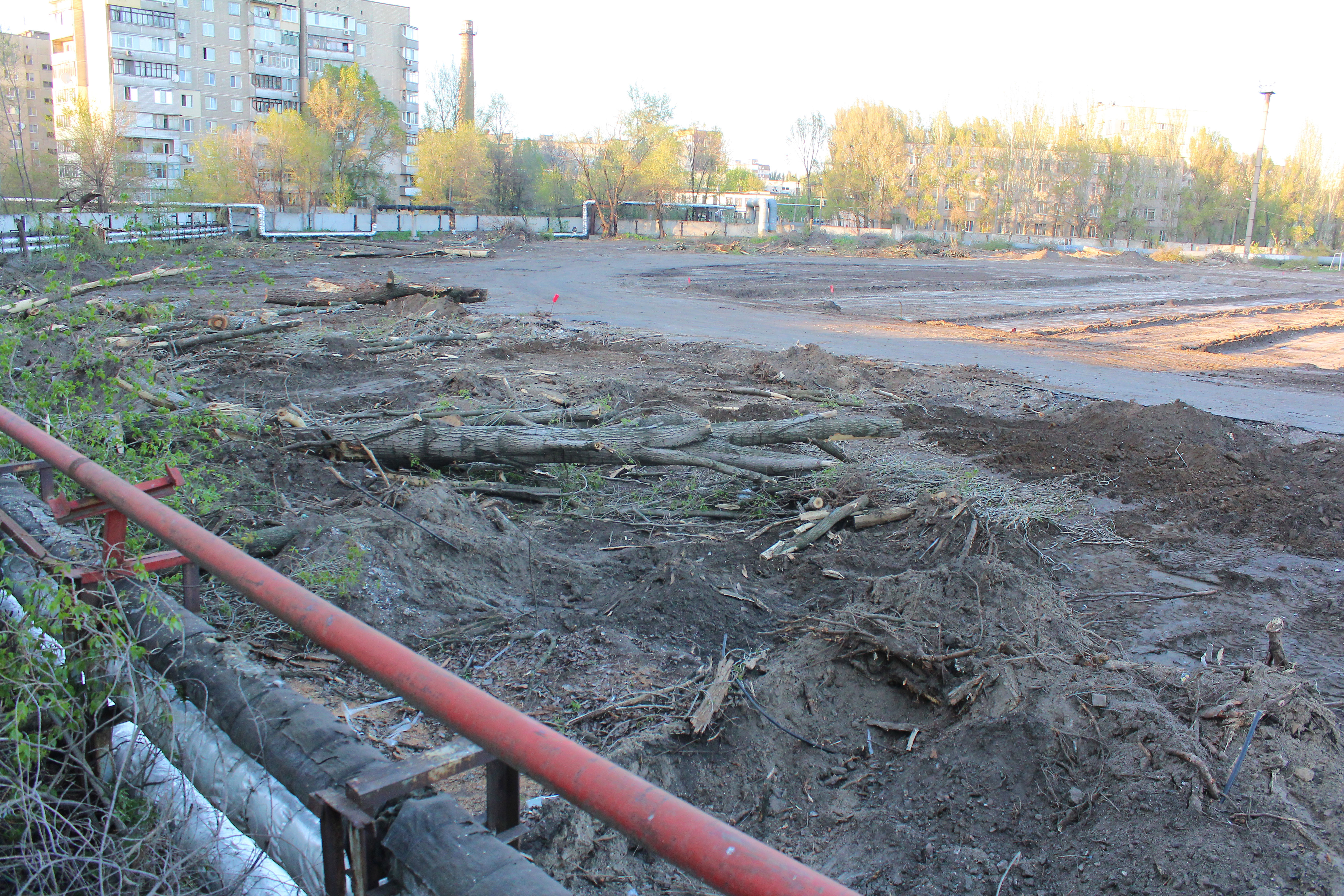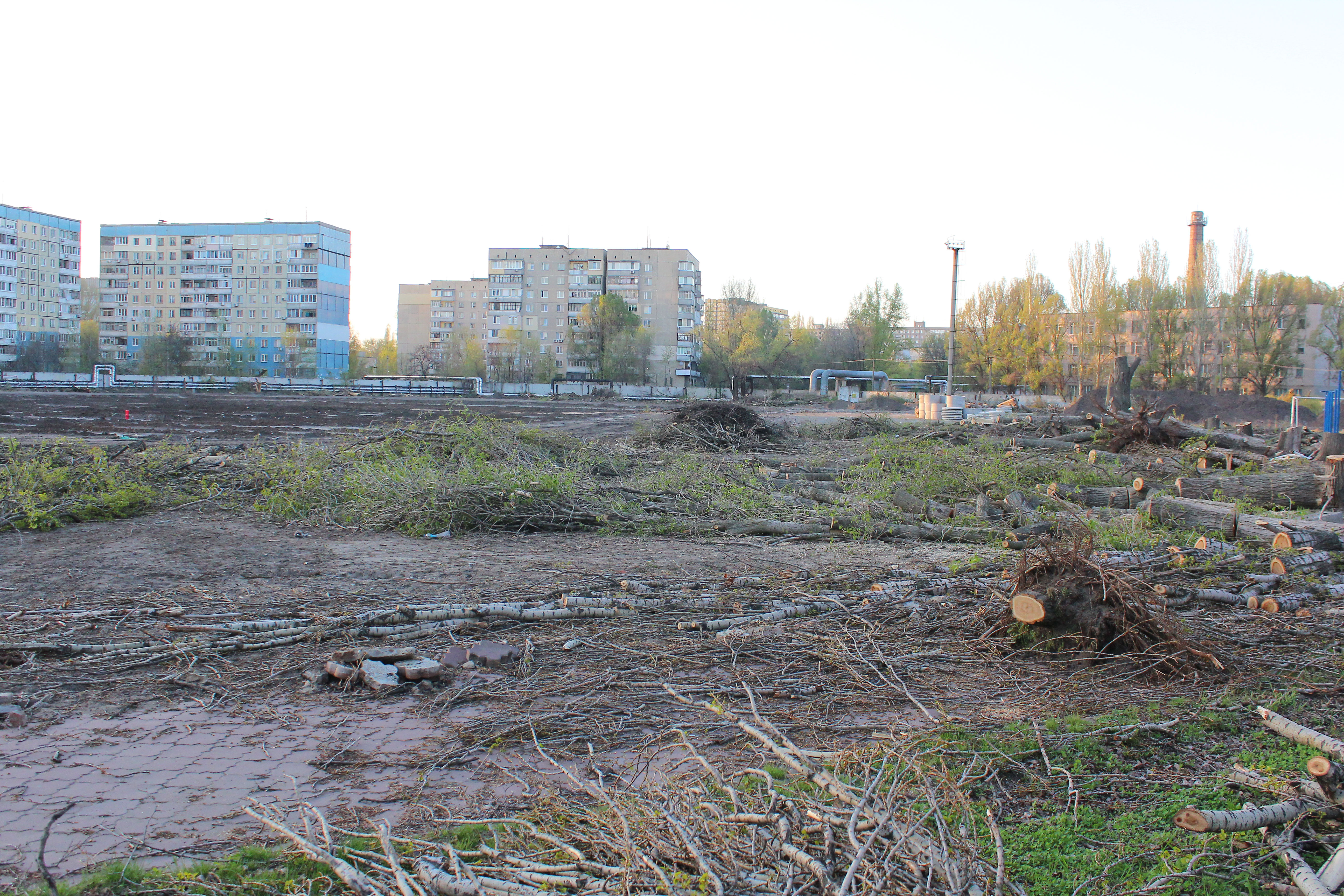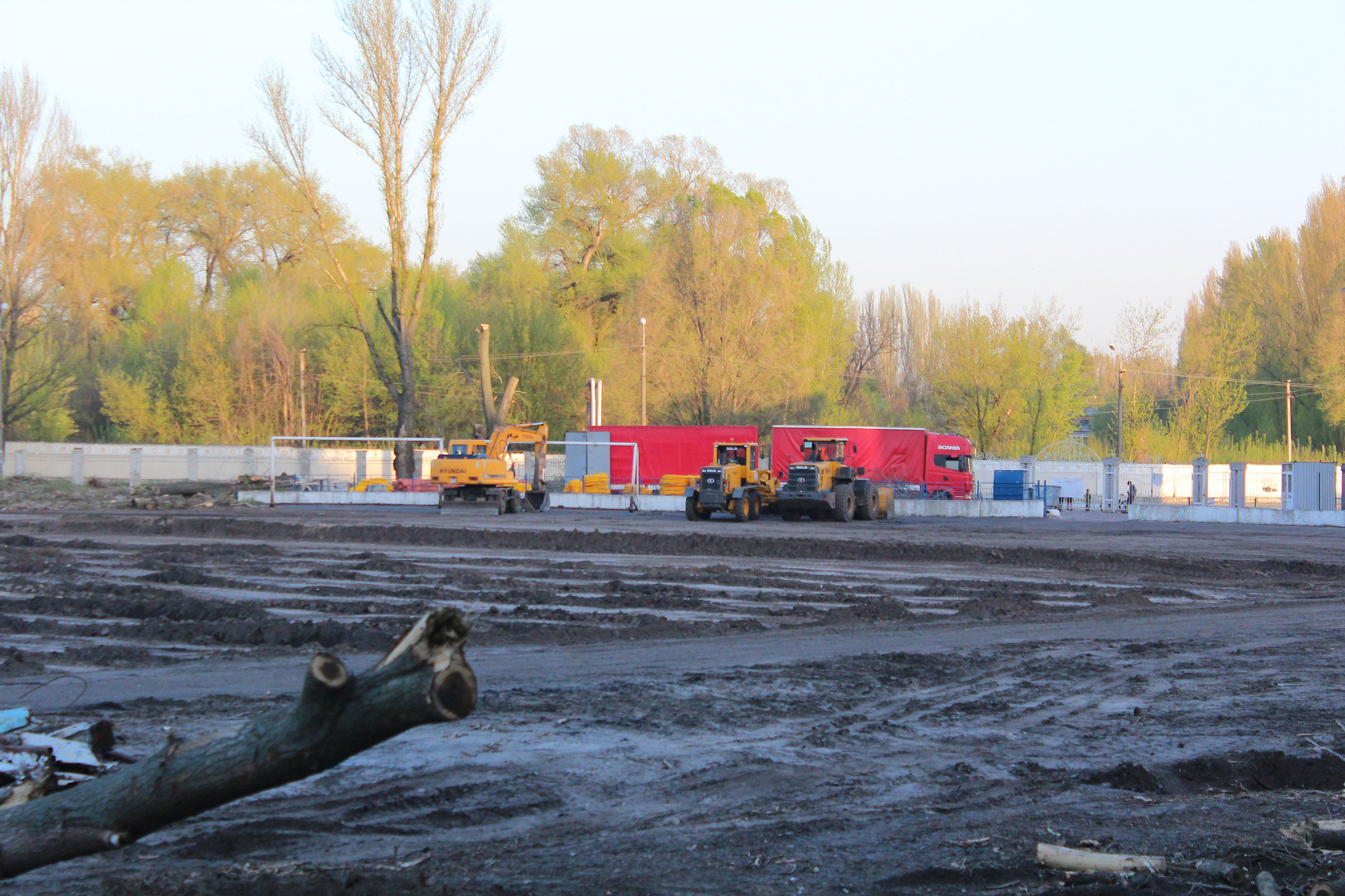 Деревья пилят по всему периметру стадиона: