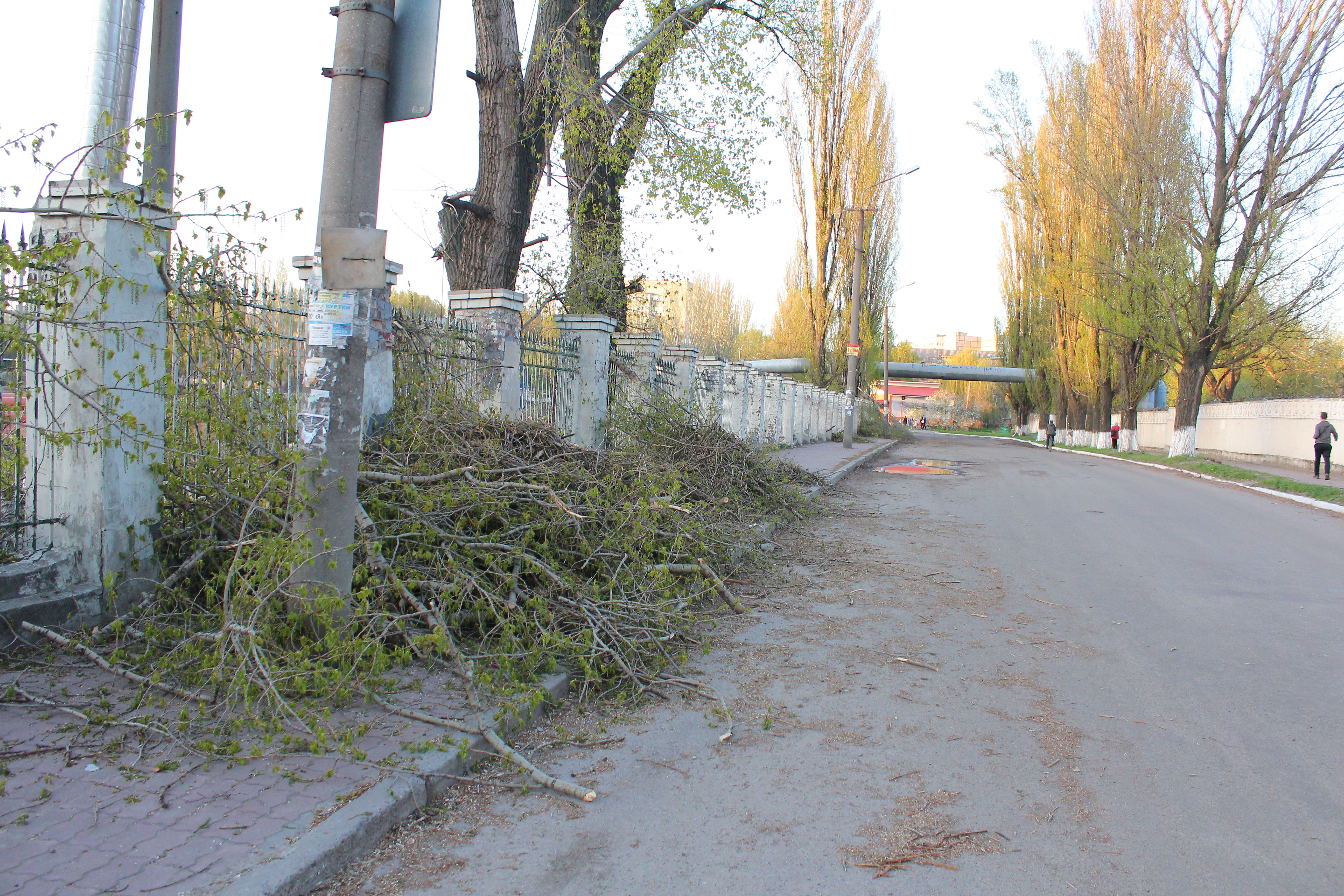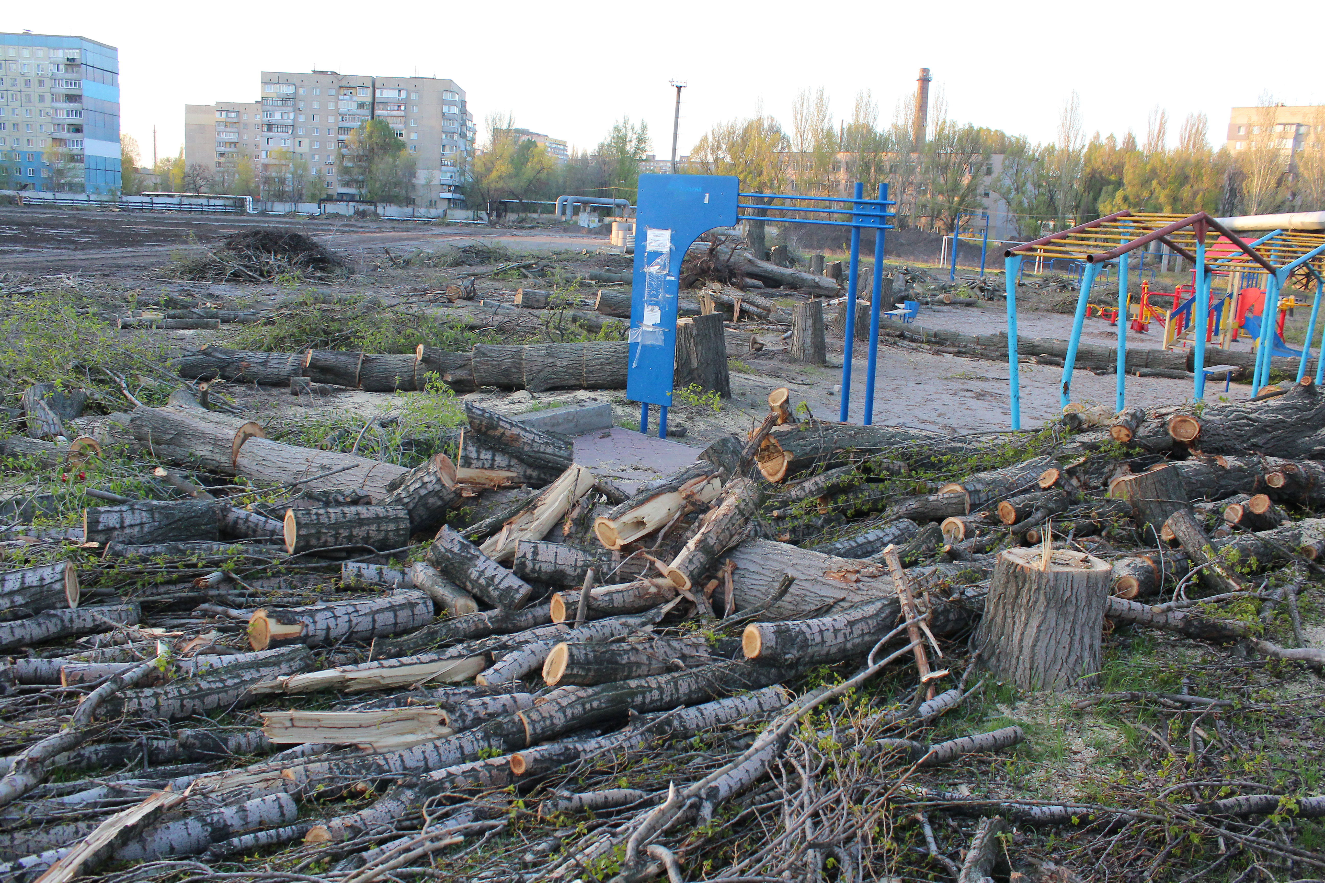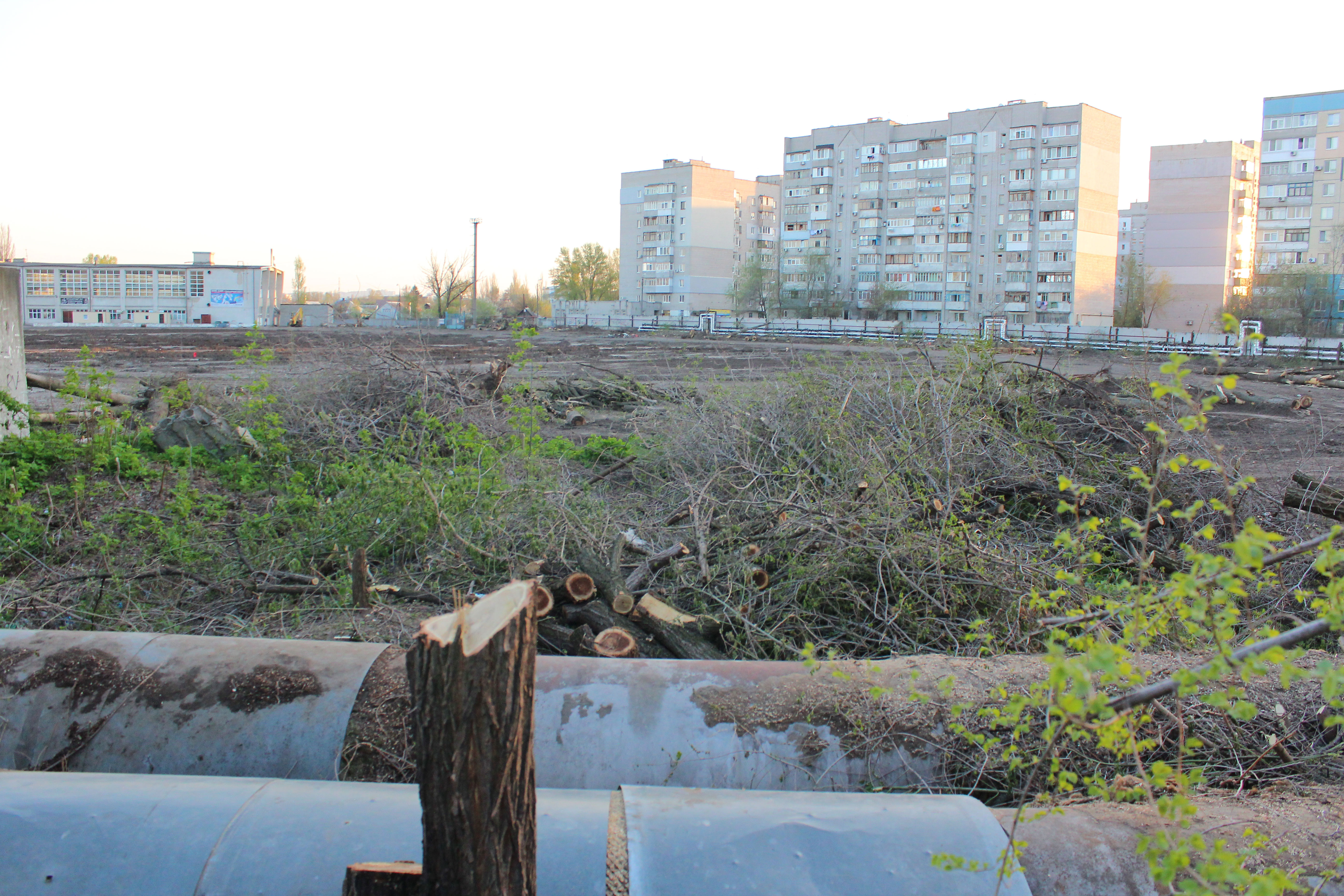 Деревья пилят по всему периметру стадиона: