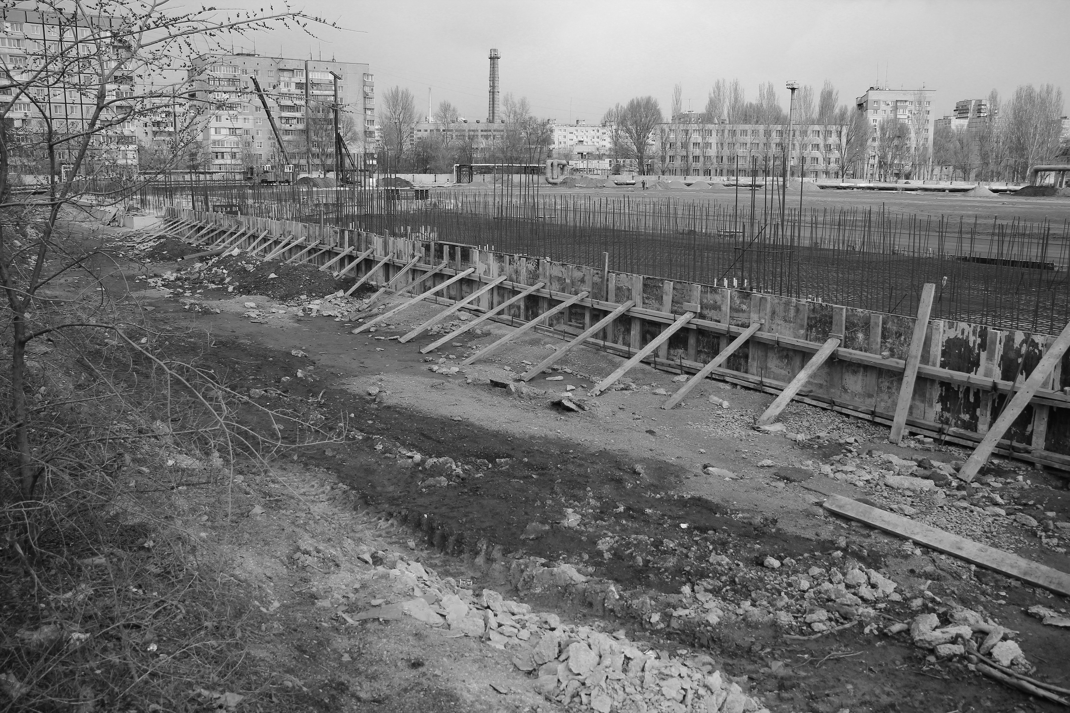 9. Строительство северной трибуны. Грунтовые воды на стадионе начинаются с уровня 1-2 метра: