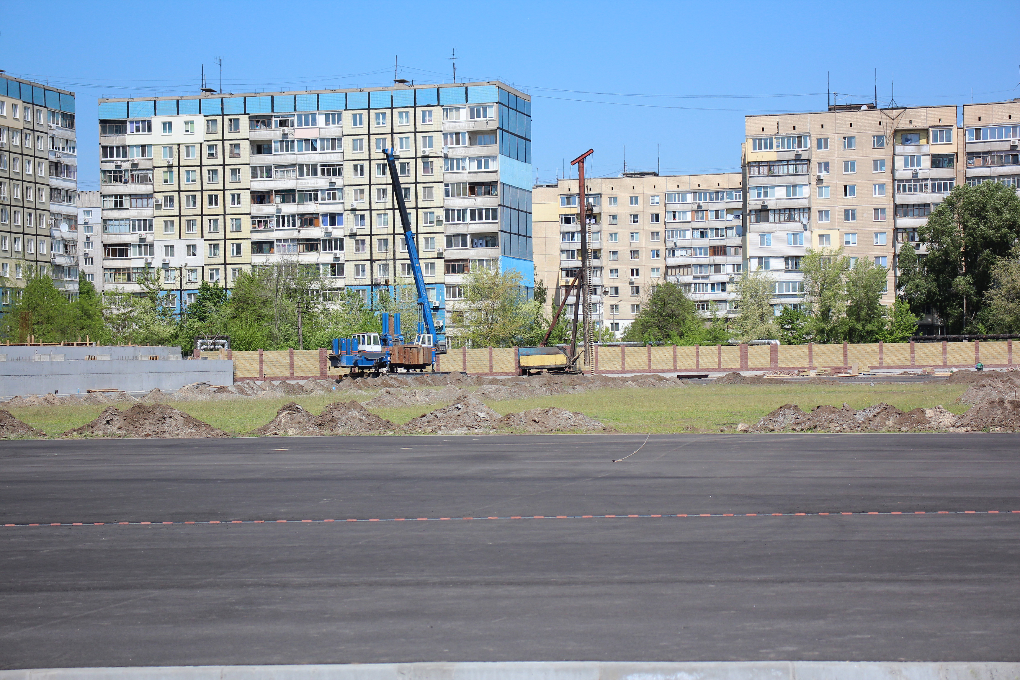 Начиная с осени прошлого года до примерно февраля, строительство стадиона было остановлено и я не показывал сводки. Сейчас там серьезное движение: по периметру територии стадиона возводят новое ограждение, полным ходом идет строительство центральной трибуны, идет бурение скважин под сваи северной трибуны.