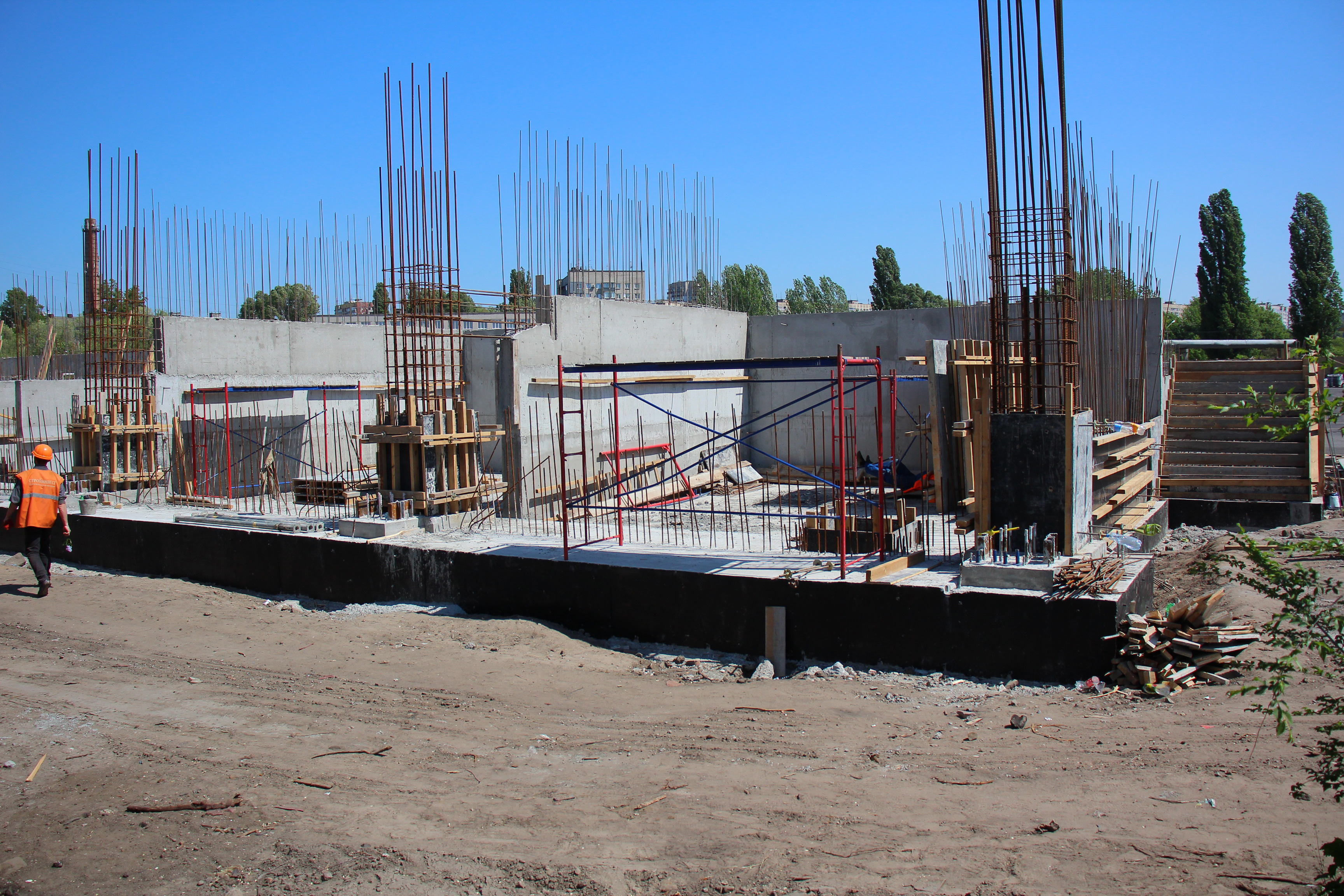 8. Центральная трибуна, строятся подтрибунные помещения. Вскоре на них будут смонтированы каскадные перекрытия трибун на 10 рядов: