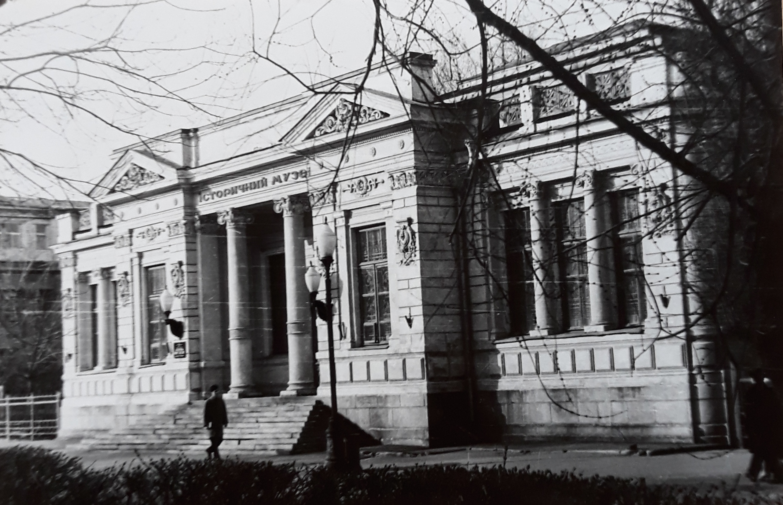 Фотография черно белая видовая Исторический музей в г Днепропетровске в котором хранится фотография первого трактора коммуны Свобода 1966г